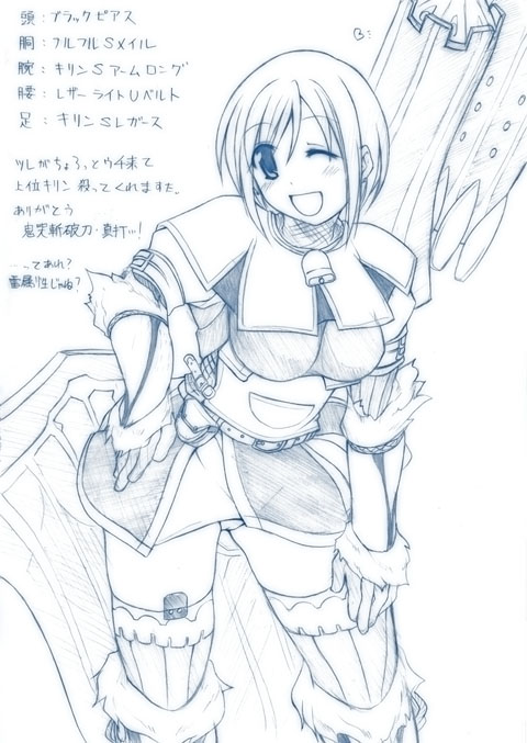 モンスターハンターP2Gより。うちのキャラです。 画像クリックででかいの。 露出万歳のわたくしめではございますが 無論スカートから除く白いアレも大歓迎でございます。 と言う訳で今回マイセット装備。ぱんちらセット。 防御力的にネックなのがレザUですが、しっくり来てしまったので仕方ないよね。 足りない分はKIAI補正でカバーな!! 戻る