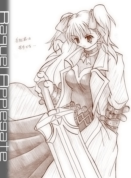 ワイルドアームズ4より。ラクウェルです。 絵クリックで大サイズver 巷で噂のツンデレさんかと思いきや、そうでもなさげ。 どちらかというとお姉さんキャラぽいです。実直なおねーさん。 大剣でロングコートで娘さんとかモロにツボなので とりあえず描いておきますた(゚Д゚)フ 戻る