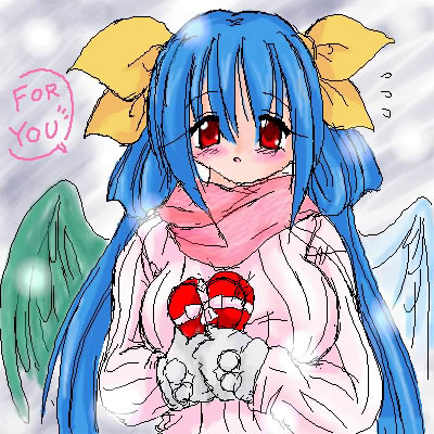 厚着の上からでもわかるほどの巨乳絵(何